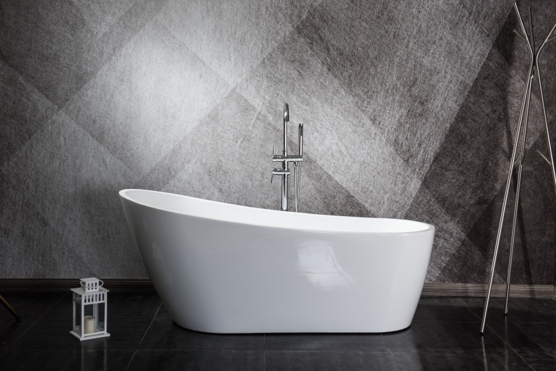 Acrylic free standing bathtub , made by 3mm-6mm acrylic sheet , reinforced by high density of fiberglass with resin , double face of the bathtub is acrylic , high glossy finished , seamless. These bathtub all including adjustable legs , overflow & pop-up siphon , the faucet is optional .