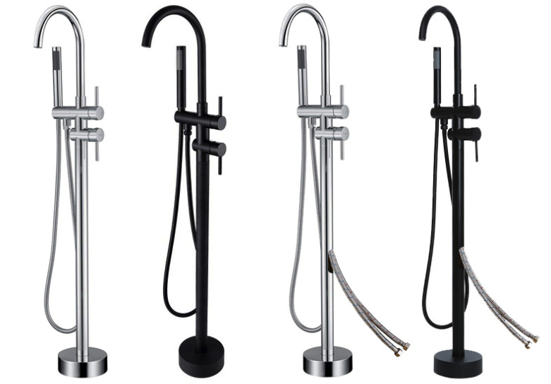 Free standing bathtub faucet , Copper body, alloy handle, 304 stainless steel hose, chrome plating surface .